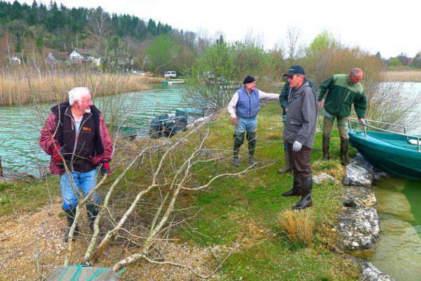 Alevinage régulier en corégones. Mise en place de frayères pour perches (buissons d’épines lestés) sur la partie occidentale du lac.