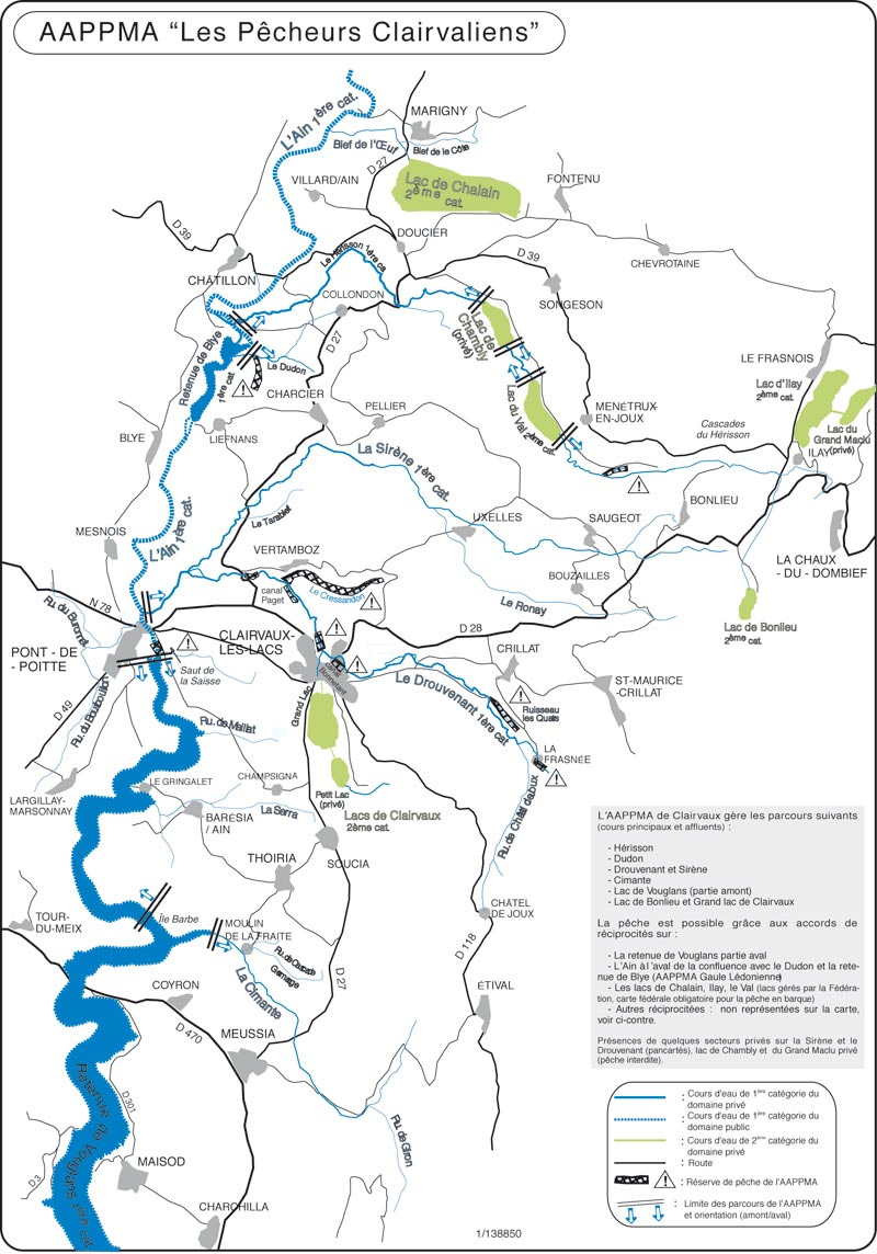 L’Association Agréée pour la Pêche et la Protection des Milieux Aquatiques « Les Pêcheurs Clairvaliens » offre des parcours, qui associent lacs (partie nord de la retenue de Vouglans, Grand Lac de Clairvaux, lac de Bonlieu) et rivières (Drouvenant, Sirène, Hérisson, Cimante, Dudon…), et permettent de pratiquer tous les types de pêche